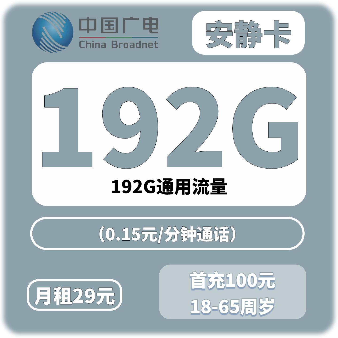 中国广电的【安静卡29元192G】,仅需29元就能拥有192G的流量大礼包!