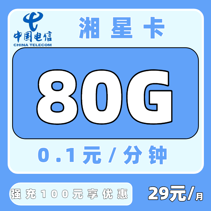 【电信湘星卡】超值来袭!仅需29元,享受80G全国流量,首月免费,自主激活,长期套餐无忧!